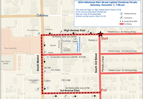 OSKALOOSA -- The 37th Annual Lighted Christmas Parade will take place on Saturday, December 7th in downtown Oskaloosa, starting at 7:00 pm. “Our team is thrilled for this year’s Lighted Christmas Parade theme, ‘Twinkling Christmas,’” says…